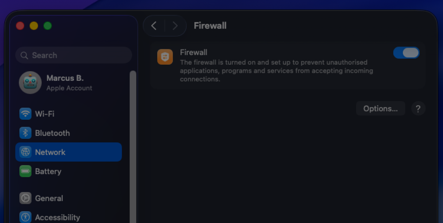 Your Mac has a built-in Firewall that acts as a digital gatekeeper. Turning it on is like locking that front door. It won’t make your Mac invisible—your device is still on the network—but it blocks unsolicited incoming connections, making you a much harder target for common network scans.